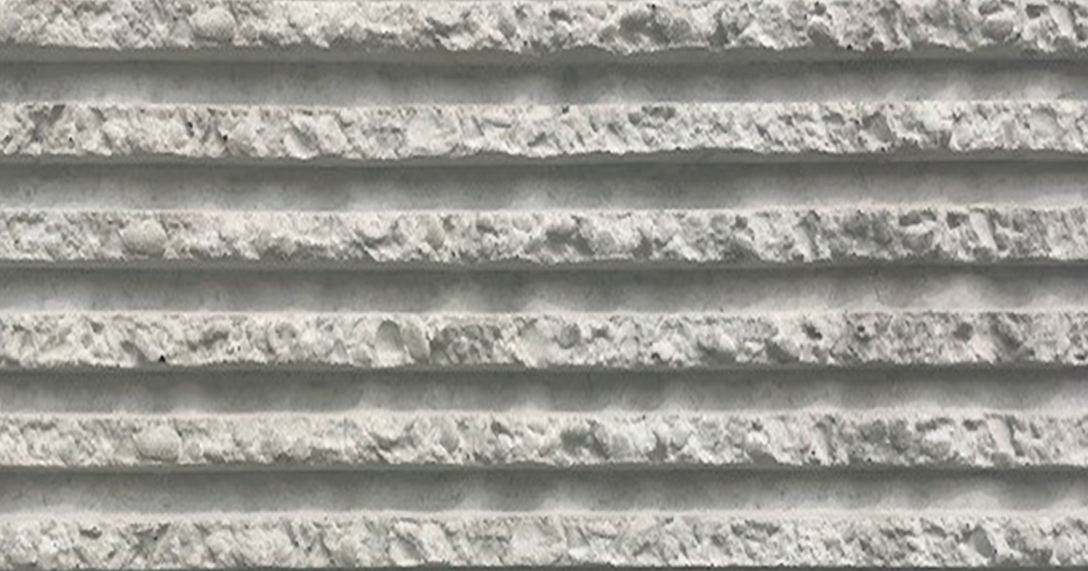 Monarc Classic 'Broken Rib' is a classic cast and hammered concrete treatment. Projecting concrete Ribs are broken off with hammering techniques to reeveal the aggregate at the ends of the Ribs. The resulting Broken Rib finish is a deep and bold jagged texture with lineal effect.